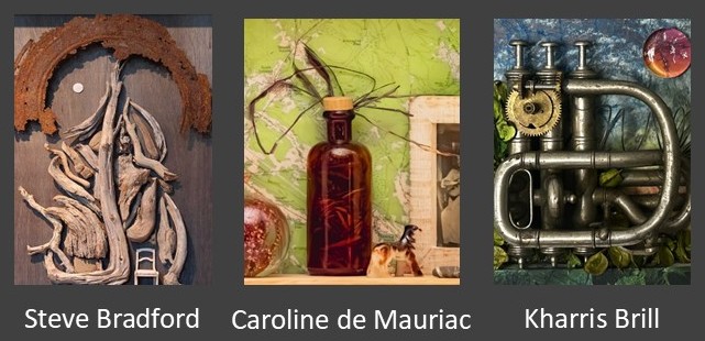 This unique group exhibition features the assemblage works of Caroline de Mauriac, Kharris B, and Steve Bradford. Each artist presents works created from a bricolage of found objects giving the collections of objects re-interpreted second lives.